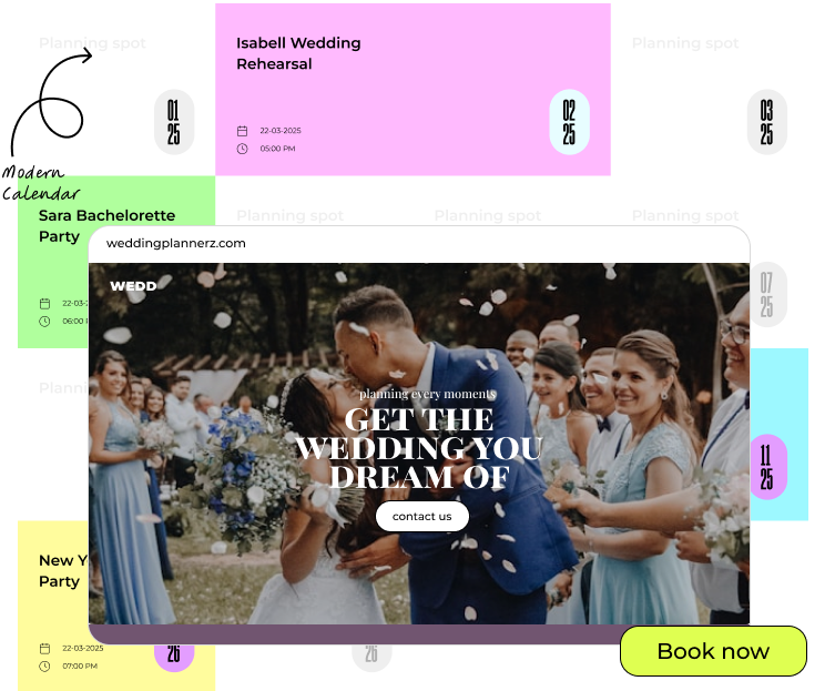 Make it easy for customers to book your services anytime. With a built-in booking form or calendar, you’ll spend less time on back-and-forth messages and more time preparing for the next big event.